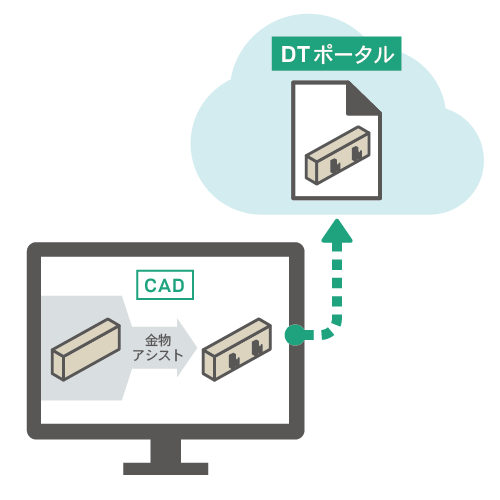 金物アシストで自動生成されたデータをDTポータルにアップロードしてください。