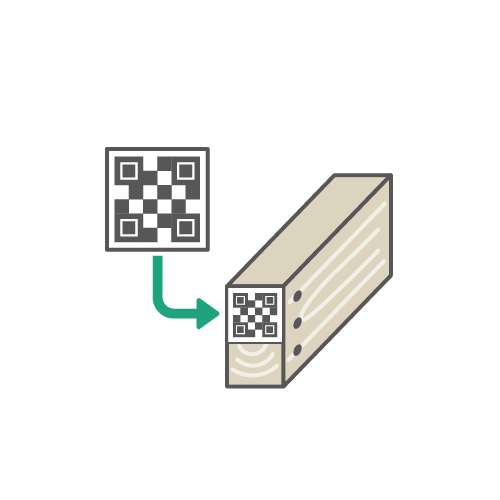 加工機から出てきた木材にQRシールを貼り付けます。
