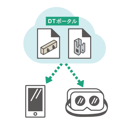 その後IFC形式で出力される投影用のデータを「DTポータル」にアップロードします。