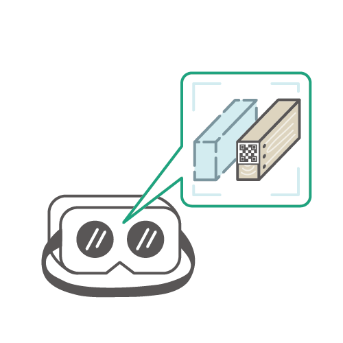 木材に貼付したQRシールをデバイスで読み取り、木材と金物の3Dモデルを投影します。